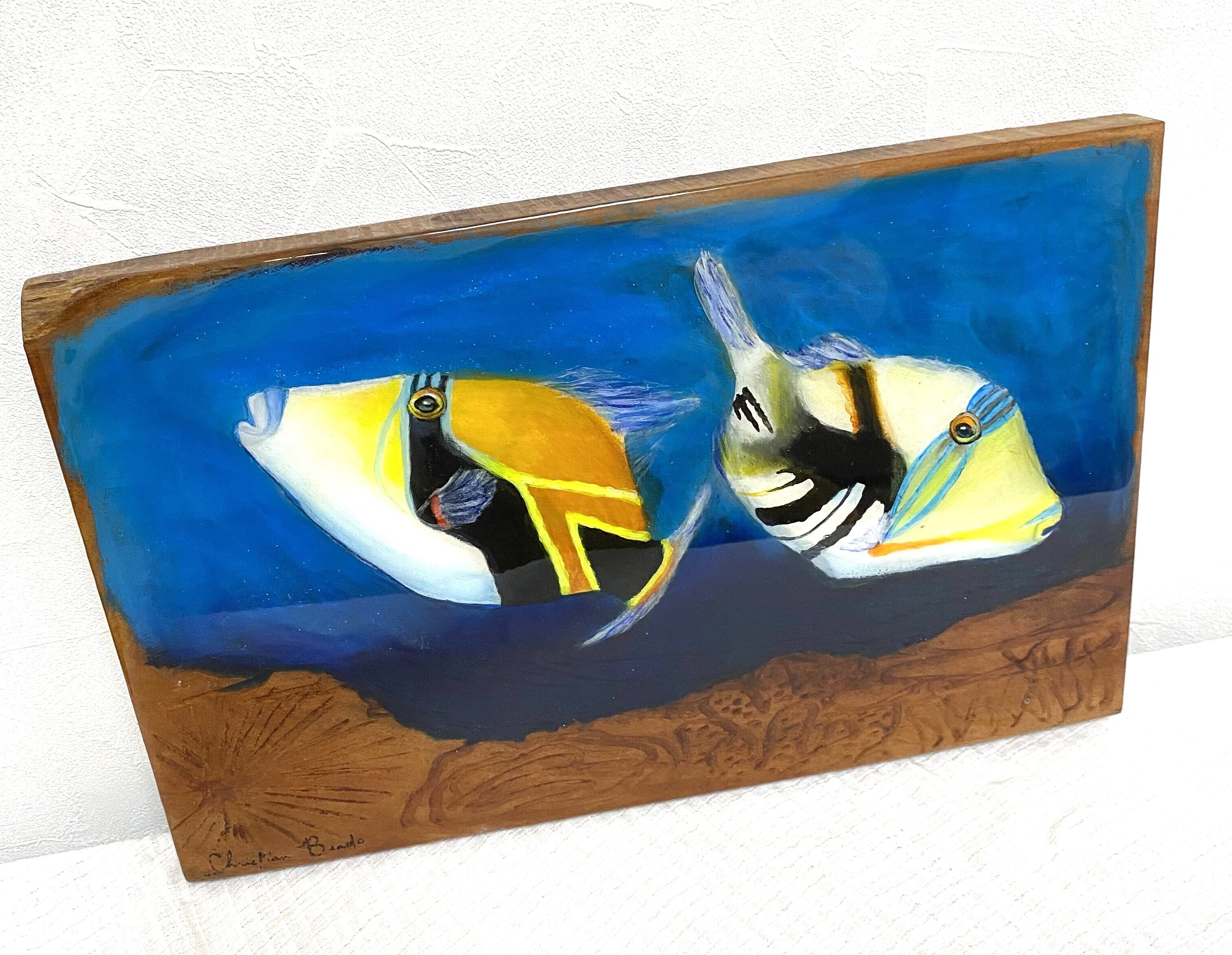 ハワイの木材に海の生き物のいのちを吹き込んだ作品です。